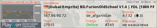 [Dubai-Emprite] BD.FurienOldSchool V1.4 | FDL [1000 FPS] представлен в виде сервера кс 1.6. Из всех имеющихся на сайте модификаций игровых серверов, наша система поставила метку Zombie сервера cs. В нашем мониторинге игровых серверов вы так же можете найти быструю навигацию по всем меткам - используйте главную страницу игры Counter Strike 1.6.