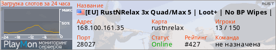 [EU] RustNRelax 3x Quad/Max 5 | Loot+ | No BP Wipes | Wiped 05/ представлен в виде сервера раст. Из всех имеющихся на сайте модификаций игровых серверов, вам может понравиться NoDecay серверы rust. А для быстрой навигации по всем меткам - используйте главную страницу игры Rust.