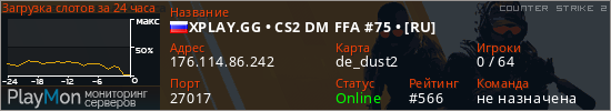 XPLAY.GG • CS2 DM FFA #75 • [RU] представлен в виде сервера кс 2. Из всех имеющихся на сайте модификаций игровых серверов, наша система поставила метку DeathMatch сервера cs2. В нашем мониторинге игровых серверов вы так же можете найти где поиграть на FFA сервере кс 2.