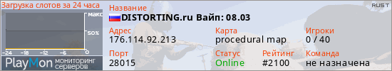 ID: 82833Ссылка: https://playmon.ru/server/176.114.92.213:28015