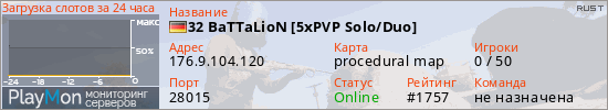 ID: 82224Ссылка: https://playmon.ru/server/176.9.104.120:28015