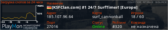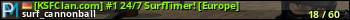 [KSFClan.com] #1 24/7 SurfTimer! [Europe] представлен в виде сервера ксс. Из всех имеющихся на сайте модификаций игровых серверов, наша система поставила метку Surf сервера css. В нашем мониторинге игровых серверов вы так же можете найти быструю навигацию по всем меткам - используйте главную страницу игры Counter Strike Source.