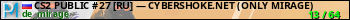 CS2 PUBLIC #27 [RU] — CYBERSHOKE.NET (ONLY MIRAGE) представлен в виде сервера кс 2. Из всех имеющихся на сайте модификаций игровых серверов, вам может понравиться Knife серверы cs2. А для быстрой навигации по всем меткам - используйте главную страницу игры Counter Strike 2.