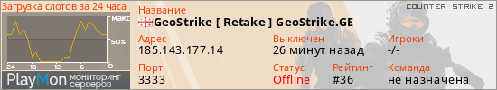 GeoStrike [ Retake ] GeoStrike.GE представлен в виде сервера кс 2. Из всех имеющихся на сайте модификаций игровых серверов, наша система поставила метку Retake сервера cs2. В нашем мониторинге игровых серверов вы так же можете найти быструю навигацию по всем меткам - используйте главную страницу игры Counter Strike 2.