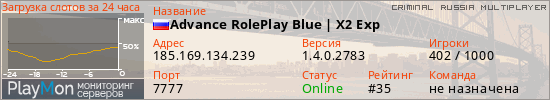 ID: 72085Ссылка: https://playmon.ru/server/185.169.134.239:7777