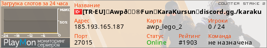[TR-EU]⭐Awp🎮Fun⭐KaraKursun⭐discord.gg./karakursun представлен в виде сервера кс 2. Из всех имеющихся на сайте модификаций игровых серверов, наша система поставила метку AWP сервера cs2. В нашем мониторинге игровых серверов вы так же можете найти быструю навигацию по всем меткам - используйте главную страницу игры Counter Strike 2.