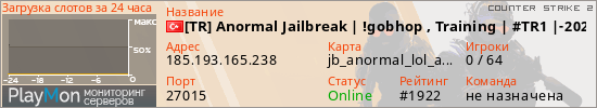 [TR] Anormal Jailbreak | !gobhop , Training | #TR1 |-2026-| - представлен в виде сервера кс 2. Из всех имеющихся на сайте модификаций игровых серверов, наша система поставила метку JailBreak сервера cs2. В нашем мониторинге игровых серверов вы так же можете найти быструю навигацию по всем меткам - используйте главную страницу игры Counter Strike 2.