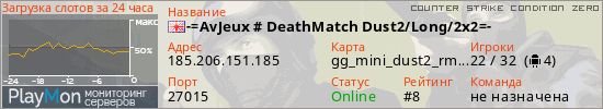 ID: 69355Ссылка: https://playmon.ru/server/185.206.151.185:27015