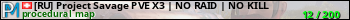 [RU] Project Savage PVE X3 | NO RAID | NO KILL представлен в виде сервера раст. Из всех имеющихся на сайте модификаций игровых серверов, наша система поставила метку PvE сервера rust. В нашем мониторинге игровых серверов вы так же можете найти быструю навигацию по всем меткам - используйте главную страницу игры Rust.