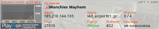 ID: 69718Ссылка: https://playmon.ru/server/185.216.144.105:27015