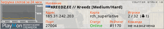 KREEDZ.EE // Kreedz [Medium/Hard] представлен в виде сервера кс 1.6. Из всех имеющихся на сайте модификаций игровых серверов, вам может понравиться Hide'n'Seek серверы cs. А для быстрой навигации по всем меткам - используйте главную страницу игры Counter Strike 1.6.
