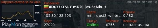 #Dust ONLY mDk||cs.FeNix.lt представлен в виде сервера кс 1.6. Из всех имеющихся на сайте модификаций игровых серверов, вам может понравиться DeathRun серверы cs. А для быстрой навигации по всем меткам - используйте главную страницу игры Counter Strike 1.6.