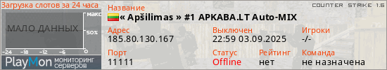 « Apšilimas » #1 APKABA.LT Auto-MIX представлен в виде сервера кс 1.6. Из всех имеющихся на сайте модификаций игровых серверов, вам может понравиться DeathRun серверы cs. А для быстрой навигации по всем меткам - используйте главную страницу игры Counter Strike 1.6.