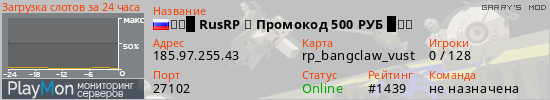 ID: 75826Ссылка: https://playmon.ru/server/185.97.255.43:27102