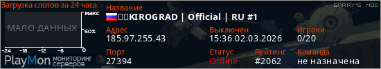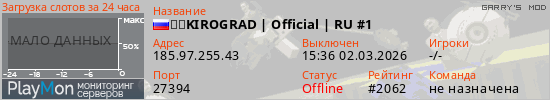 ID: 74762Ссылка: https://playmon.ru/server/185.97.255.43:27394