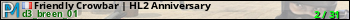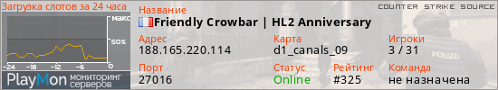 Friendly Crowbar | HL2 Anniversary представлен в виде сервера ксс. Из всех имеющихся на сайте модификаций игровых серверов, вам может понравиться Surf серверы css. А для быстрой навигации по всем меткам - используйте главную страницу игры Counter Strike Source.
