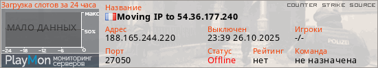 Moving IP to 54.36.177.240 представлен в виде сервера ксс. Из всех имеющихся на сайте модификаций игровых серверов, вам может понравиться Surf серверы css. А для быстрой навигации по всем меткам - используйте главную страницу игры Counter Strike Source.