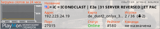 ≡ iC ≡ ICONOCLAST | E2e |31 SERVER REVERSED|JET PACK/SUPER представлен в виде сервера ксс. Из всех имеющихся на сайте модификаций игровых серверов, вам может понравиться DeathMatch серверы css. А для быстрой навигации по всем меткам - используйте главную страницу игры Counter Strike Source.