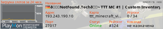ID: 66362Ссылка: https://playmon.ru/server/193.243.190.10:27017