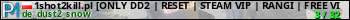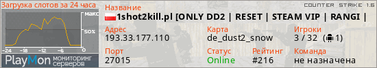1shot2kill.pl [ONLY DD2 | RESET | STEAM VIP | RANGI | FREE VIP (20-9) / SVIP | LECZENIE | SKINY | MONETY | ASYSTY | MEDALE] @ 1s2k.pl представлен в виде сервера кс 1.6. Из всех имеющихся на сайте модификаций игровых серверов, вам может понравиться DeathRun серверы cs. А для быстрой навигации по всем меткам - используйте главную страницу игры Counter Strike 1.6.