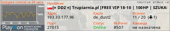 [» DD2 «] Trupiarnia.pl [FREE VIP 18-10 | 100HP | SZUKAMY ADMINA] представлен в виде сервера кс 1.6. Из всех имеющихся на сайте модификаций игровых серверов, вам может понравиться DeathRun серверы cs. А для быстрой навигации по всем меткам - используйте главную страницу игры Counter Strike 1.6.