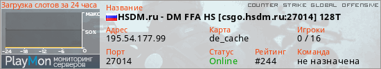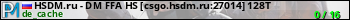 HSDM.ru - DM FFA HS [csgo.hsdm.ru:27014] 128T представлен в виде
