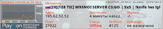 [20][128 TIC] M9SNOI SERVER CS:GO | 5x5 | !knife !ws !gloves представлен в виде