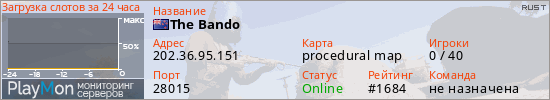 ID: 83173Ссылка: https://playmon.ru/server/202.36.95.151:28015