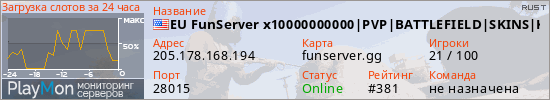 EU FunServer x10000000000|PVP|BATTLEFIELD|SKINS|KITS|TP|MYMINI| представлен в виде