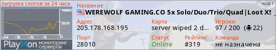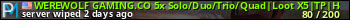 WEREWOLF GAMING.CO 5x Solo/Duo/Trio/Quad|Loot X5|TP|Homes|Kits| представлен в виде