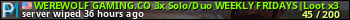 WEREWOLF GAMING.CO 3x Solo/Duo WEEKLY FRIDAYS|Loot x3|WIPED представлен в виде