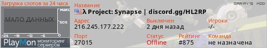 ID: 74617Ссылка: https://playmon.ru/server/216.245.177.222:27015