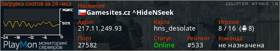 Gamesites.cz ^HideNSeek представлен в виде сервера кс 1.6. Из всех имеющихся на сайте модификаций игровых серверов, наша система поставила метку Hide'n'Seek сервера cs. В нашем мониторинге игровых серверов вы так же можете найти быструю навигацию по всем меткам - используйте главную страницу игры Counter Strike 1.6.