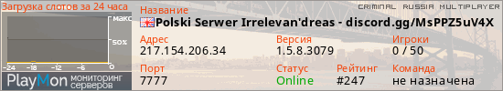 ID: 72515Ссылка: https://playmon.ru/server/217.154.206.34:7777