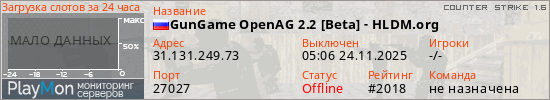 Серевер выключен 05:06 24.11.2025 / Следующее обновление через 2913 сек.