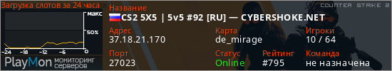 CS2 5X5 | 5v5 #92 [RU] — CYBERSHOKE.NET представлен в виде сервера кс 2. Из всех имеющихся на сайте модификаций игровых серверов, наша система поставила метку 5vs5 сервера cs2. В нашем мониторинге игровых серверов вы так же можете найти быструю навигацию по всем меткам - используйте главную страницу игры Counter Strike 2.
