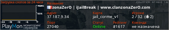 zonaZerO | iJailBreak | www.clanzonaZerO.com представлен в виде сервера кс 1.6. Из всех имеющихся на сайте модификаций игровых серверов, наша система поставила метку JailBreak сервера cs. В нашем мониторинге игровых серверов вы так же можете найти быструю навигацию по всем меткам - используйте главную страницу игры Counter Strike 1.6.