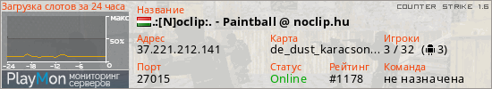 .:[N]oclip:. - Paintball @ noclip.hu представлен в виде сервера кс 1.6. Из всех имеющихся на сайте модификаций игровых серверов, наша система поставила метку PaintBall сервера cs. В нашем мониторинге игровых серверов вы так же можете найти быструю навигацию по всем меткам - используйте главную страницу игры Counter Strike 1.6.