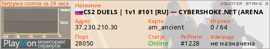 ID: 72762Ссылка: https://playmon.ru/server/37.230.210.30:28050