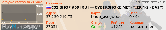 CS2 BHOP #69 [RU] — CYBERSHOKE.NET (TIER 1-2 - EASY) представлен в виде сервера кс 2. Из всех имеющихся на сайте модификаций игровых серверов, вам может понравиться Knife серверы cs2. А для быстрой навигации по всем меткам - используйте главную страницу игры Counter Strike 2.