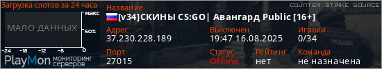 [v34]СКИНЫ CS:GO| Авангард Public [16+] представлен в виде сервера ксс. Из всех имеющихся на сайте модификаций игровых серверов, вам может понравиться DeathRun серверы css. А для быстрой навигации по всем меткам - используйте главную страницу игры Counter Strike Source.