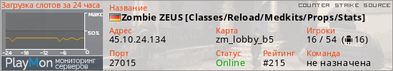 Zombie ZEUS [Classes/Reload/Medkits/Props/Stats] представлен в виде
