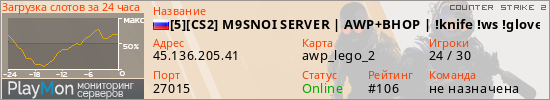 [5][CS2] M9SNOI SERVER | AWP+BHOP | !knife !ws !gloves представлен в виде сервера кс 2. Из всех имеющихся на сайте модификаций игровых серверов, наша система поставила метку AWP сервера cs2. В нашем мониторинге игровых серверов вы так же можете найти быструю навигацию по всем меткам - используйте главную страницу игры Counter Strike 2.