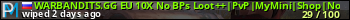 WARBANDITS.GG EU 10X No BPs Loot++|PvP|MyMini|Shop|Noob Friendl представлен в виде
