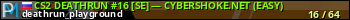 CS2 DEATHRUN #16 [SE] — CYBERSHOKE.NET (EASY) представлен в виде сервера кс 2. Из всех имеющихся на сайте модификаций игровых серверов, наша система поставила метку DeathRun сервера cs2. В нашем мониторинге игровых серверов вы так же можете найти быструю навигацию по всем меткам - используйте главную страницу игры Counter Strike 2.