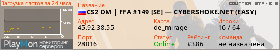CS2 DM | FFA #149 [SE] — CYBERSHOKE.NET (EASY) представлен в виде