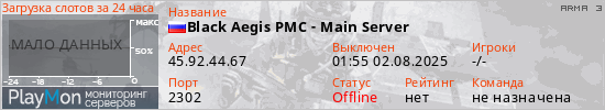 Black Aegis PMC - Main Server представлен в виде сервера арма 3. Из всех имеющихся на сайте модификаций игровых серверов, вам может понравиться DayZ серверы arma3. А для быстрой навигации по всем меткам - используйте главную страницу игры ARMA 3.