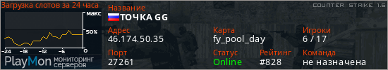 ТОЧКА GG представлен в виде сервера кс 1.6. Из всех имеющихся на сайте модификаций игровых серверов, наша система поставила метку GunGame сервера cs. В нашем мониторинге игровых серверов вы так же можете найти быструю навигацию по всем меткам - используйте главную страницу игры Counter Strike 1.6.