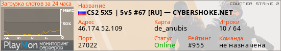 CS2 5X5 | 5v5 #67 [RU] — CYBERSHOKE.NET представлен в виде сервера кс 2. Из всех имеющихся на сайте модификаций игровых серверов, наша система поставила метку 5vs5 сервера cs2. В нашем мониторинге игровых серверов вы так же можете найти быструю навигацию по всем меткам - используйте главную страницу игры Counter Strike 2.
