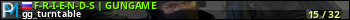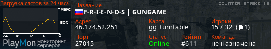 F-R-I-E-N-D-S | GUNGAME представлен в виде сервера кс 1.6. Из всех имеющихся на сайте модификаций игровых серверов, наша система поставила метку GunGame сервера cs. В нашем мониторинге игровых серверов вы так же можете найти быструю навигацию по всем меткам - используйте главную страницу игры Counter Strike 1.6.